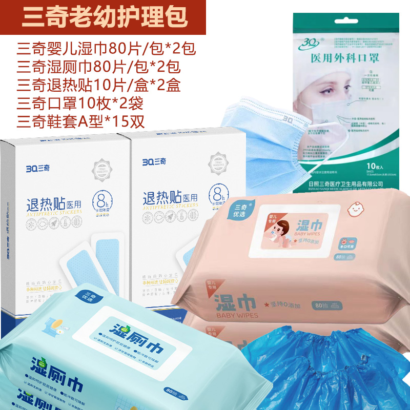三奇老幼护理包退热贴婴儿湿巾湿厕巾鞋套